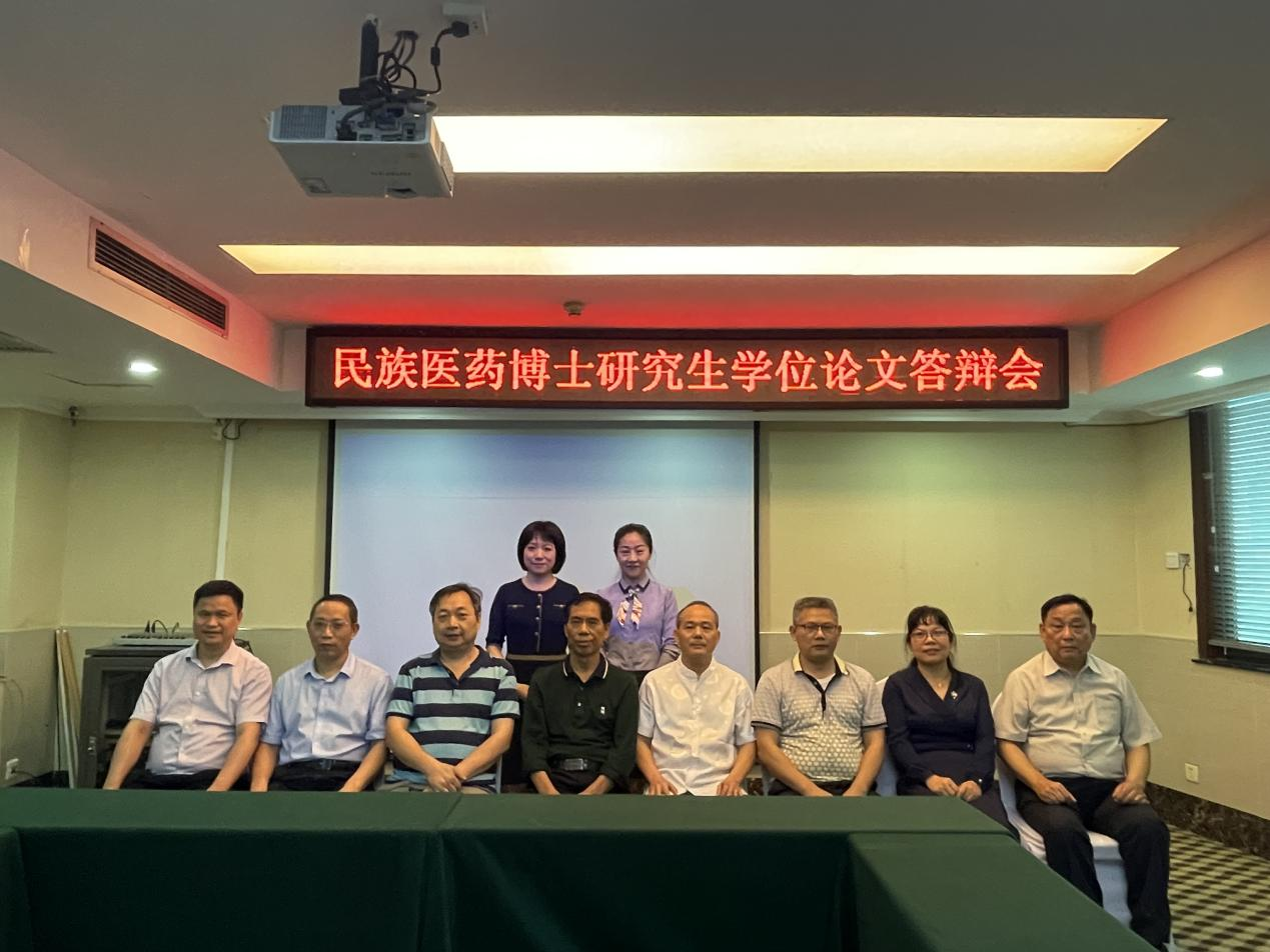 2022年5月20日下午15:00,本平台于天妃酒店7楼会议室召开民族医药博士学位论文答辩会。梁爽2017级博士研究生学位论文题目为:《瑶医药理论视野下风敌症用药挖掘整理与活性成分及作用机制研究-以六方钻为例》;田慧2018级博士研究生学位论文题目为:《壮族医药理论视野下壮医伤科用药的特色与应用研究》。答辩委员会主席钟振国博士教授主持会议,李富强博士教授、申利群博士教授、杨力强博士教授、罗本华博士教授、傅鹏博士教授、梁子宁博士教授担任答辩专家组委员,谢凤凤老师担任答辩秘书。指导老师朱华教授简要介绍研究生的基本情况,博士研究生田慧、梁爽分别报告学位论文的主要内容,答辩委员会委员提问,答辩人回答;答辩人回答学位论文评审人的学术评语中的问题。答辩委员会举行会议:答辩委员对论文水平、答辩情况、课程学习及科学研究等方面的情况进行讨论和评议;答辩委员根据答辩情况,采用无记名投票方式,对论文及答辩情况按100分制给予评分投票;答辩秘书起草并宣读答辩委员会决议;答辩委员讨论修改并通过决议;答辩委员会主席签署《学位论文答辩委员会决议书》,答辩委员会主席宣读决议书及投票结果,博士研究生田慧、梁爽顺利通过答辩。参加答辩会的还有张淼老师、韦安达老师、韦露玲老师等。