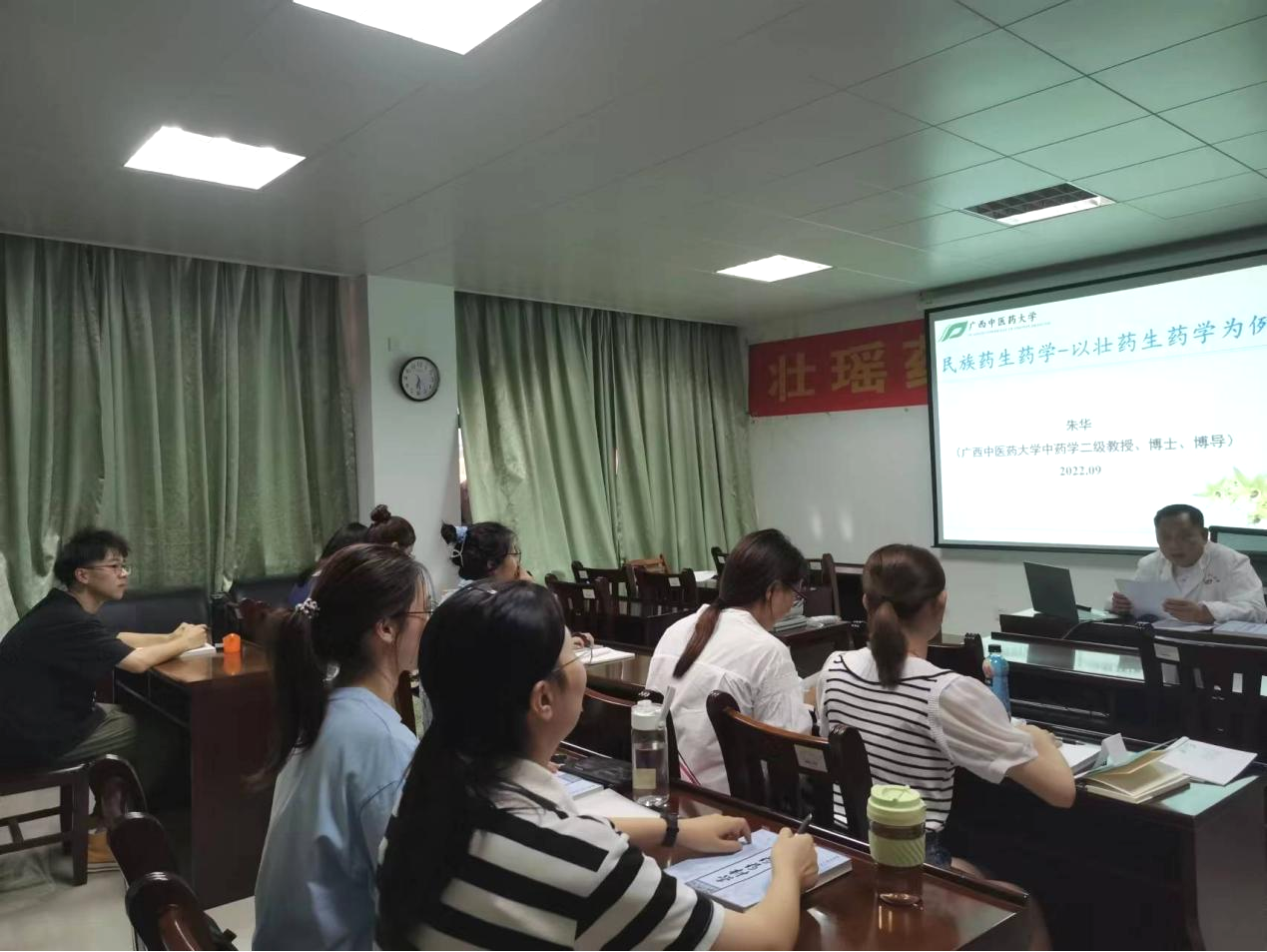 朱华教授为研究生授课 发布时间:2022-09-23 18:43:00 浏览次数: 次 【字体:小 大】 2022年9月22日,我平台主任朱华教授为我校2022级硕士研究生授课《民族药生药学》。课程以壮药生药学为切入点,向同学们进行讲解,朱华教授注重理论知识与实践相结合,带领各位同学参观了壮瑶药重点实验室,鼓励同学们勤奋拼搏、取得优异的学习成绩。 分享到: 【打印正文】
