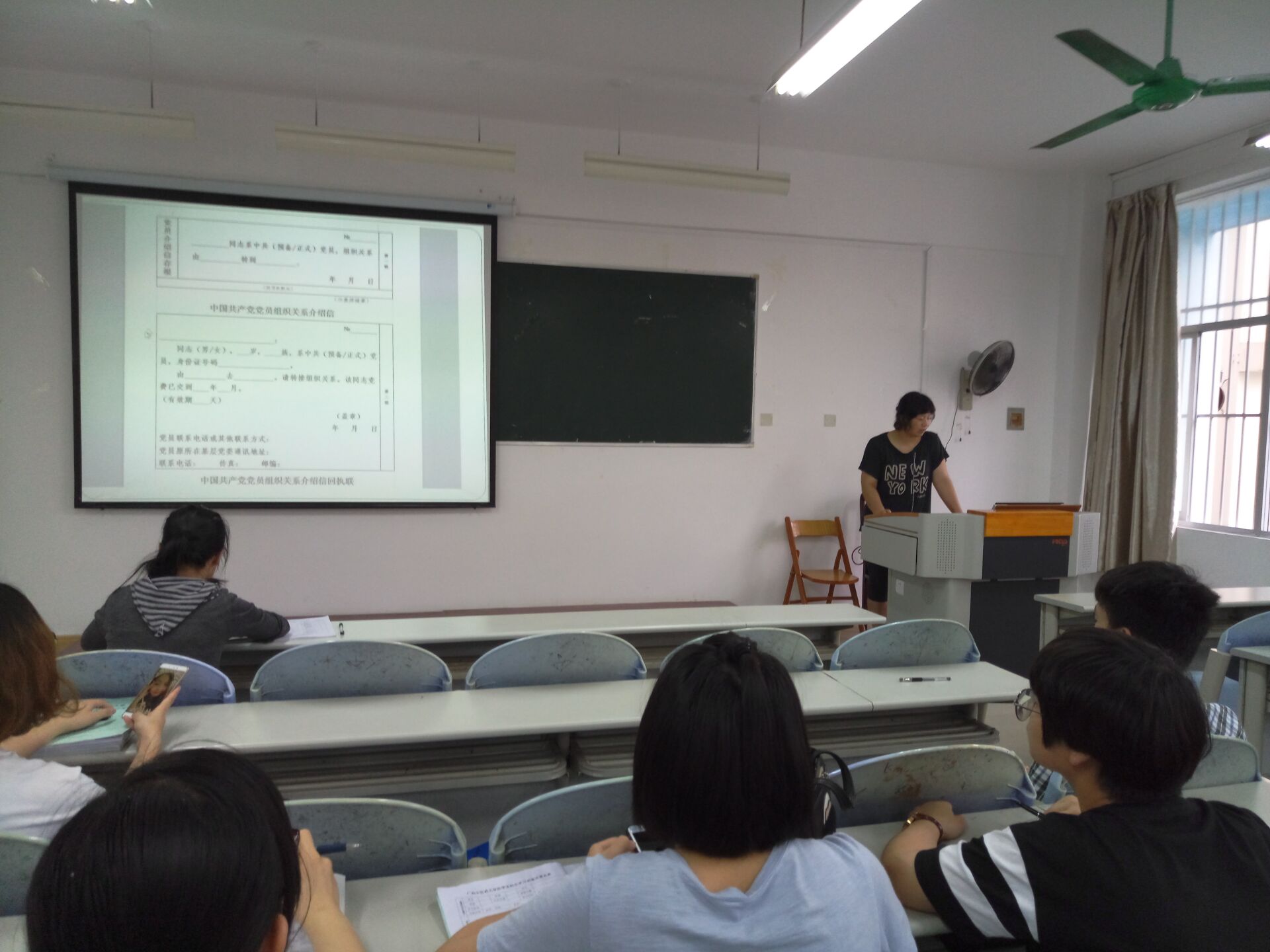 大会中,书记对毕业生党员提出几点要求:(1)在离校期间,充分发挥模范带头作用,协助辅导员做好各项毕业生工作,以实际行动带动广大同学共同营造良好的毕业离校氛围。(2)在工作中,发挥党员的先锋模范带头作用,不断学习党的理论知识,增强党性修养;加强专业知识学习,严格遵守党组织纪律,按时交纳党费、积极参与党组织生活会。会议中,书记还针对毕业生党员如何转党组织关系进行详细讲解,从什么是党员组织关系、党组织关系介绍信的作用、拿到介绍信后的注意事项以及党组织关系转移的程序等等进行了详细说明。