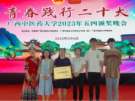 2023年5月4日晚,星空彩票老版本下载2023年五四颁奖晚会在仙葫校区体育场召开。壮医药学院团委荣获2022年度“五四红旗团委”称号。