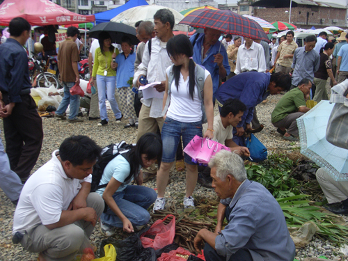 壮医药学院学生考察靖西端午药市