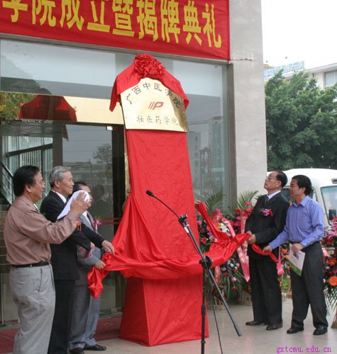 本报讯 (记者陈晨)广西中医学院壮医药学院成立暨揭牌仪式10月26日上午在广西中医学院举行,这标志着我国壮医药高等教育和人才培养进入了一个新的发展阶段。正在南宁出席全国首届壮医药学术会议暨全国民族医药交流会的有关领导和代表,以及广西中医学院的领导及师生员工200多人参加了揭牌典礼。