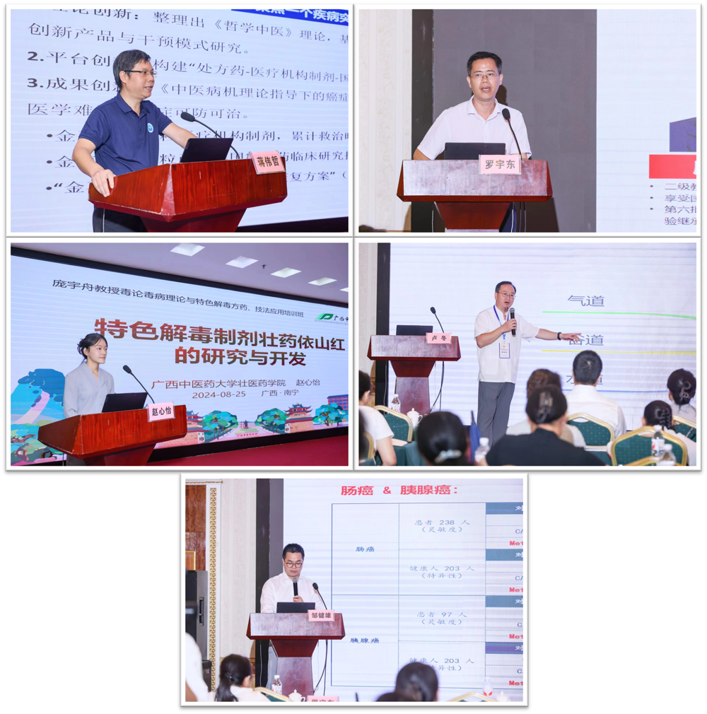 毒论毒病理论临床应用专题汇报环节,流派核心成员梁明坤博士、陈延强主任、覃辉博士、钟璐主任、陈莹副主任基于庞氏毒论及毒病治疗原则,分别就癌症、风湿病、情志病、妇科病及中风病的从毒辨治进行了深入阐述,展示了庞氏毒论在临床多领域的广泛应用与显著疗效。此专题汇报不仅为与会的医务人员提供了宝贵的治病经验与启示,也进一步推动了毒病理论和治疗原则在临床实践中的贯彻与应用。这些临床实践不仅丰富了毒病理论的应用范围,也证明了毒病毒论治疗原则在不同疾病治疗中的广泛适用性和有效性。
